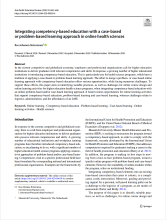 | Integrating competency-based education with a case-based or problem-based learning approach in online health sciences In the current competitive and globalized economy, employers and professional organizations call for higher education institutions to deliver graduates with relevant competencies and skills. In response, a growing number of higher educational institutions is introducing competency-based education. This is particularly true for health science programs, which have a tradition of applying a case-based or problem-based learning approach. |