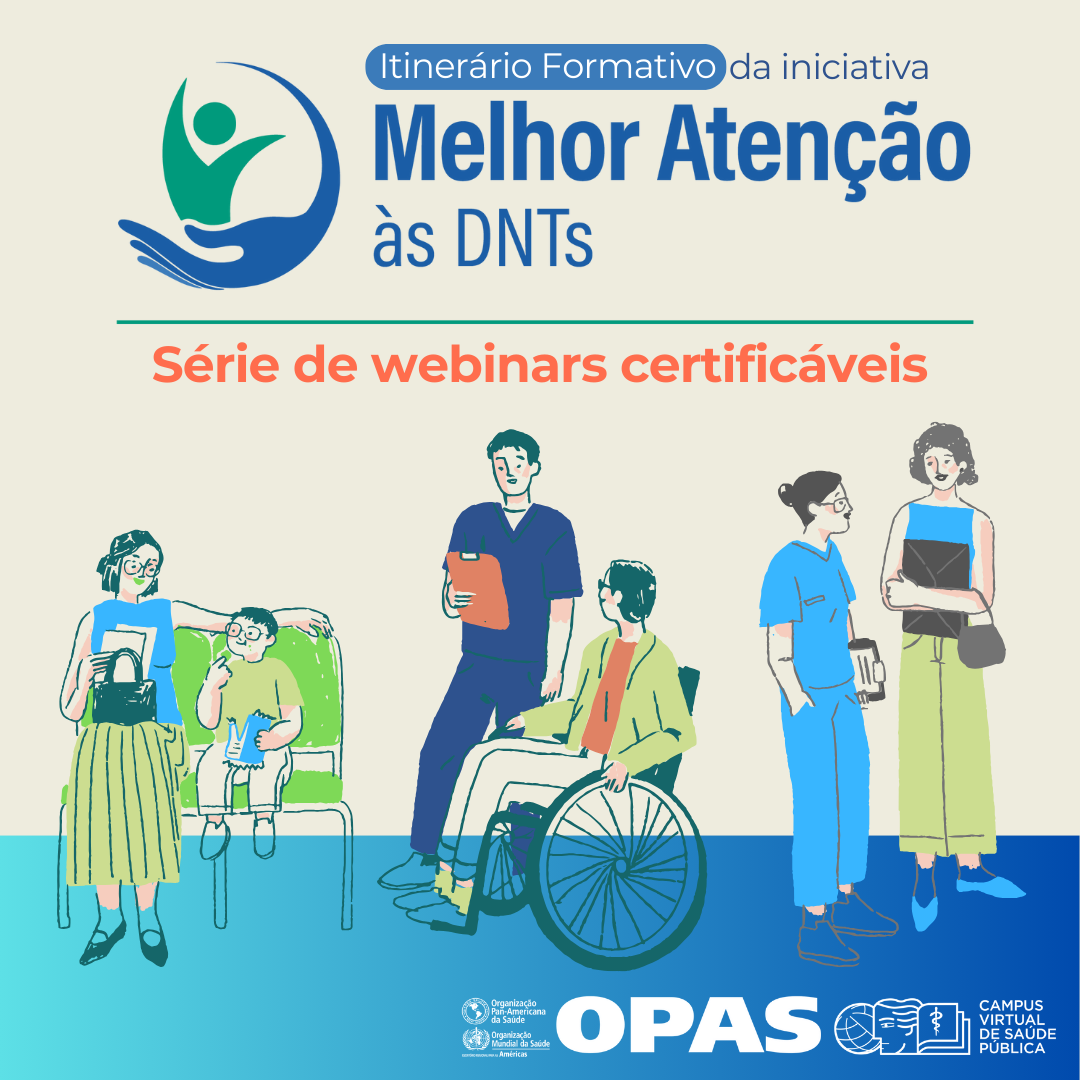 Webinários síncronos, com interação em tempo real, organizados em ciclos temáticos que oferecem certificado. Podem incluir atividades de avaliação disponíveis no espaço virtual, como questionários, estudos de caso e enquetes.