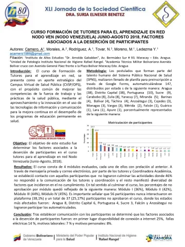 Trabajo de investigación presentado en las XLI Jornadas de la Sociedad Científica "Dra. Suria Elneser Benítez" del Instituto Nacional de Higiene Rafael Rangel