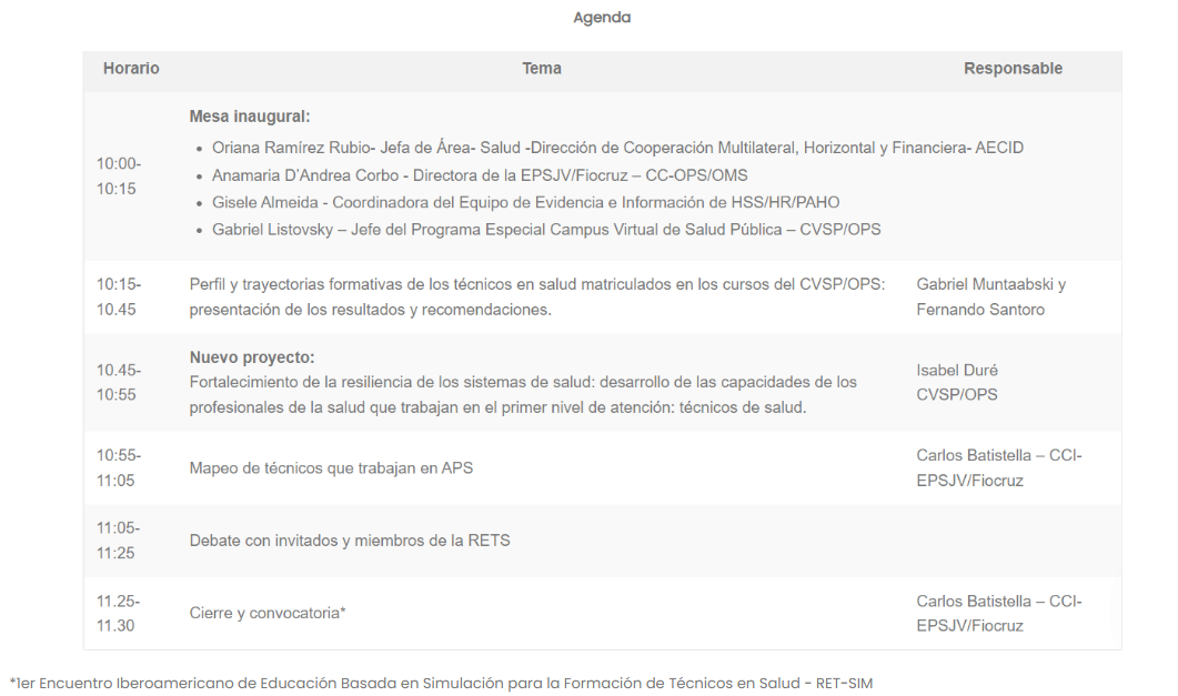 En su segundo evento tratará sobre: Perfil y trayectorias formativas de los técnicos sanitarios matriculados en los cursos del CVSP/OPS: presentación de los resultados finales y del nuevo proyecto.