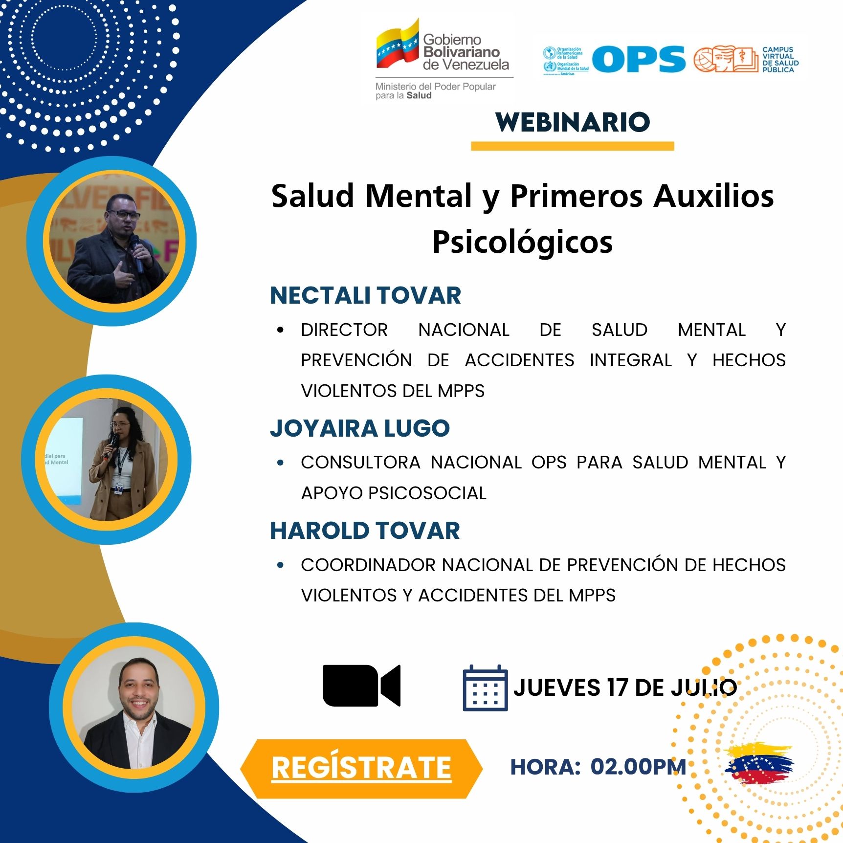 El seminario web "Salud Mental y Primeros Auxilios Psicológicos" tiene como propósito principal sensibilizar, informar y capacitar a los participantes sobre la importancia del cuidado de la salud mental y la implementación de estrategias básicas de primeros auxilios psicológicos en contextos personales, comunitarios, educativos y laborales. En un mundo cada vez más complejo y exigente, donde el estrés, la ansiedad, la depresión y otras afecciones emocionales han cobrado gran relevancia, se hace urgente promover herramientas accesibles y efectivas que contribuyan al bienestar psicosocial de las personas.