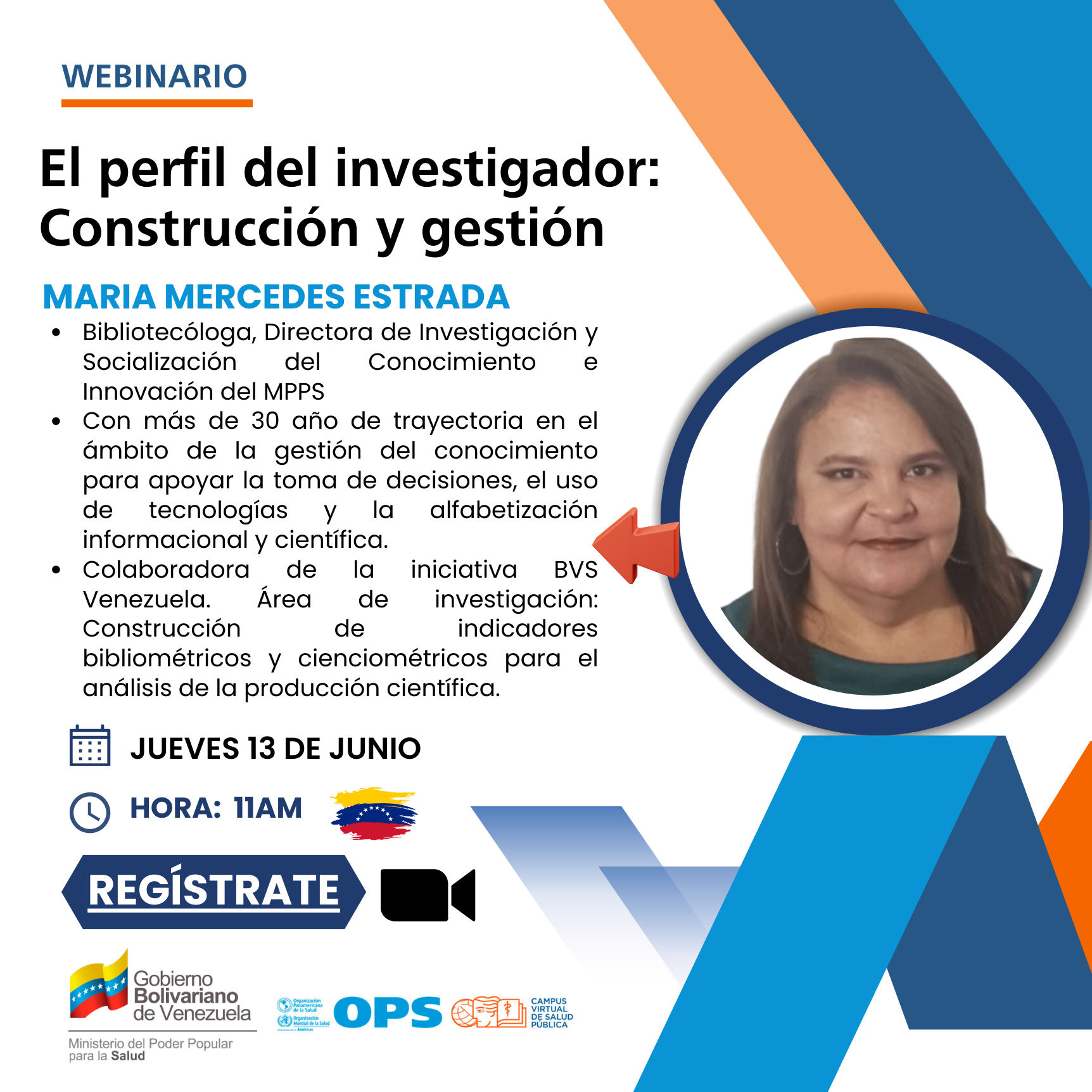 Bibliotecóloga, Directora de Investigación y Socialización del Conocimiento e Innovación del Ministerio del Poder Popular para la Salud, ex Secretaria General de la iniciativa BVS Venezuela, colaboradora de las bases de datos LILACS y LIVECS, con especialización en Gerencia de Redes de Servicios de Información (Universidad Central de Venezuela). Su trayectoria ha estado enfocada en tres ámbitos específicos: la gestión del conocimiento para apoyar la toma de decisiones, coordinación editorial y el uso de tecnologías. Desde el 2007, incursiona en Educación a Distancia y Virtual, el diseño instruccional, estrategias didácticas y elaboración de recursos educativos abiertos. Asesora de la revista Salud de los Trabajadores, docente invitada de la Maestría en Salud Ocupacional e Higiene del Ambiente Laboral (Universidad de Carabobo), Asesora externa de Tesis. Su área de investigación: Bibliometría y Cienciometria: Construcción de indicadores bibliométricos, cienciométricos y webmetría para el análisis de la producción científica.
