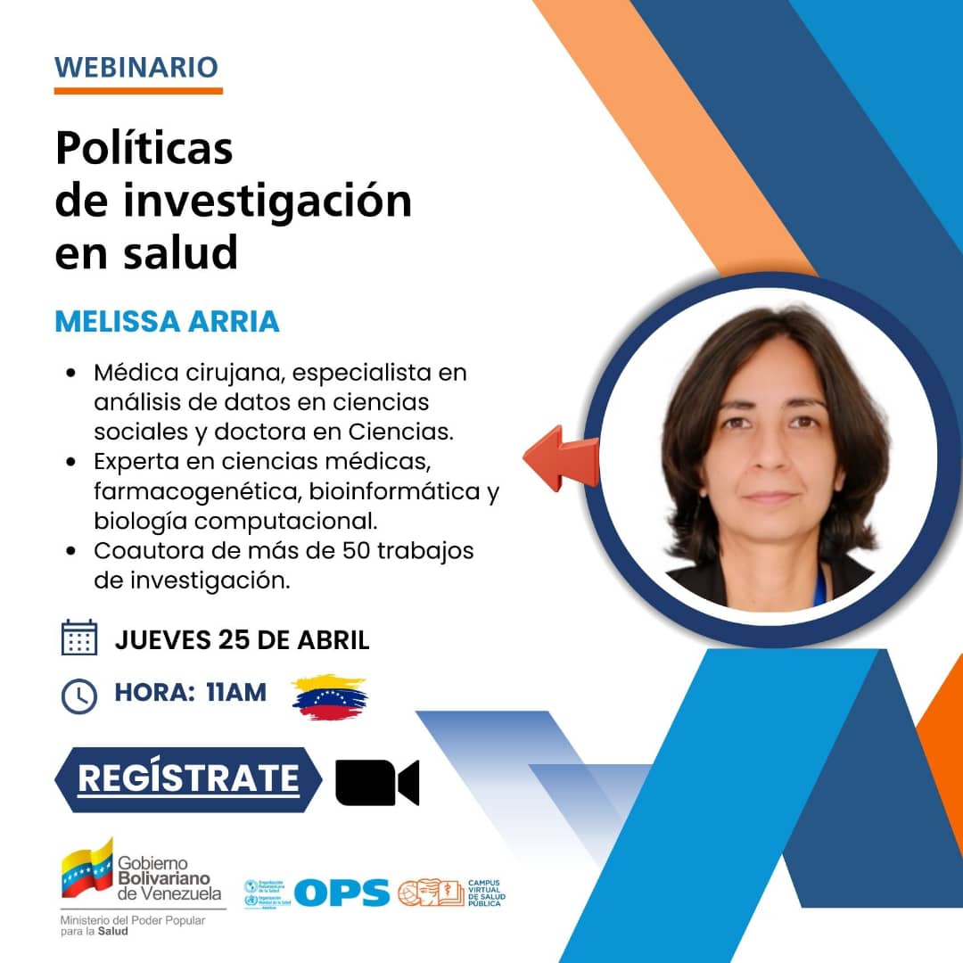 El Ministerio del Poder Popular para la Salud (MPPS) a través del Campus Virtual de Salud Pública (CVSP) Nodo Venezuela, desarrollarán el tercer webinar con el tema Políticas de investigación en salud.